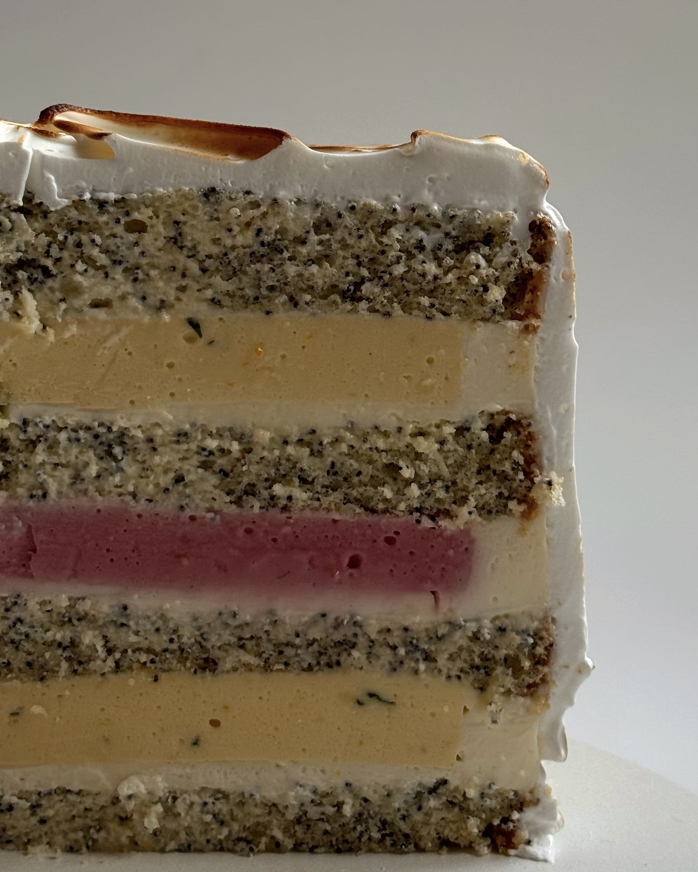 Цей торт — свіжа, яскрава та водночас витончена комбінація смаків. Ніжний маковий бісквіт поєднується з кремовою текстурою та освіжаючими ягідно-цитрусовими мусами. Ідеальний варіант для тих, хто любить легкі, сучасні десерти з виразним, але гармонійним смаком.